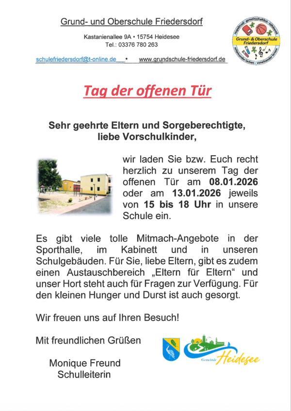 Herzlich Willkommen im Grundschulbereich der Schule Friedersdorf!