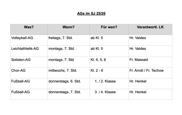 Arbeitsgemeinschaften Schuljahr 2025/2026